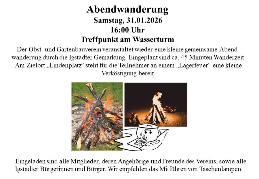 Die Förderung des Umwelt- und Landschaftsschutzes, insbesondere die Pflege von Streuobstwiesen, die Verschönerung des Stadtteiles Igstadt durch Pflanzkübel und deren Pflege, die Anschaffung der hierzu notwendigen Geräte, die Veranstaltung von Vorträgen, hauptsächlich über die Garten- und Landschaftspflege (Obstbaumschnittkurse, Blumenpflege, Pflanzenschutz usw.) sowie Brauchtumspflege und Pflege der Geselligkeit.